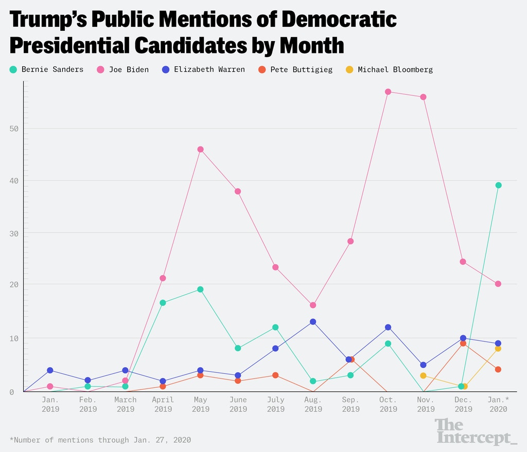 Trump's Public Mentions of Democratic Presidential Candidates by Month
